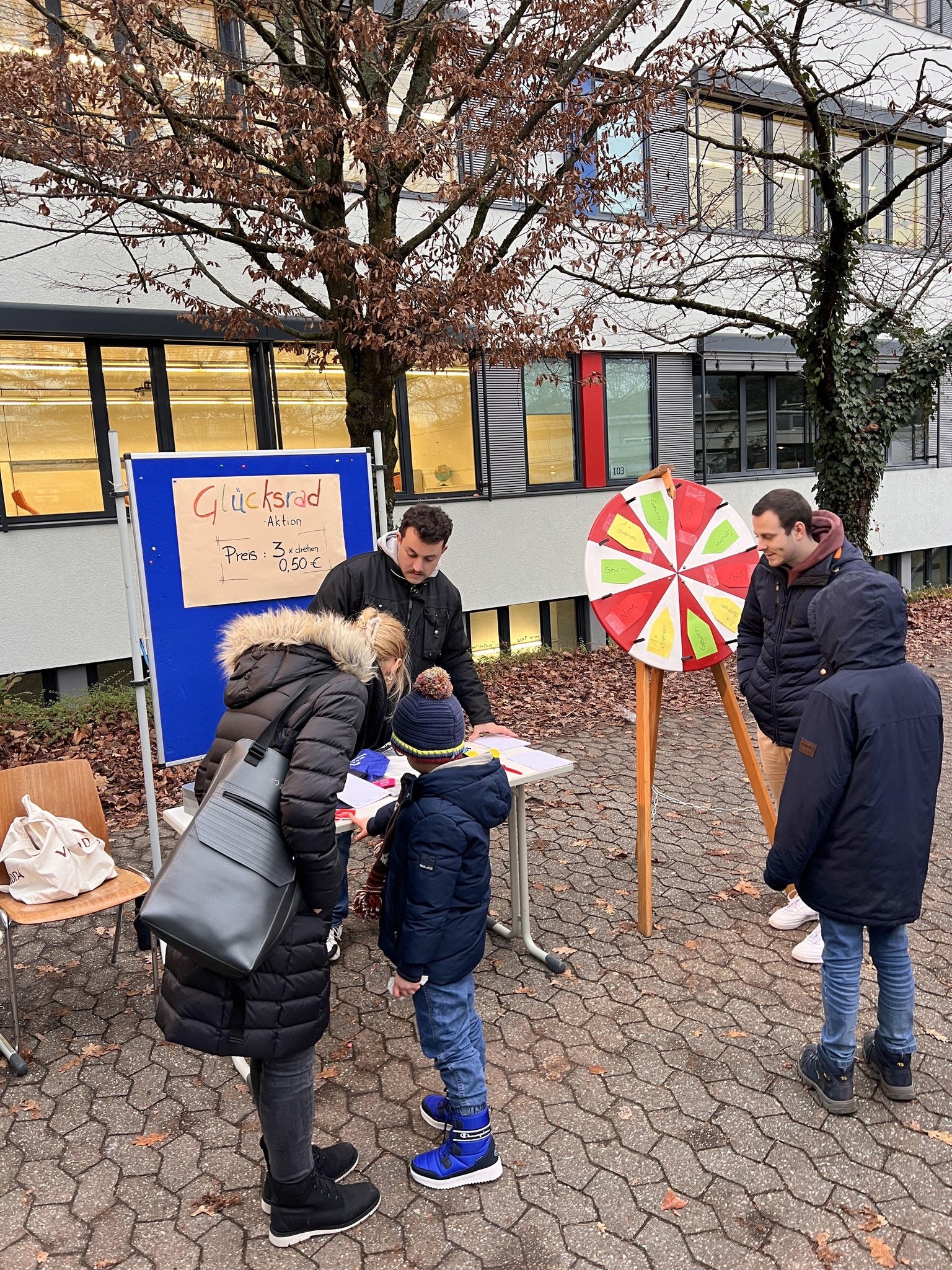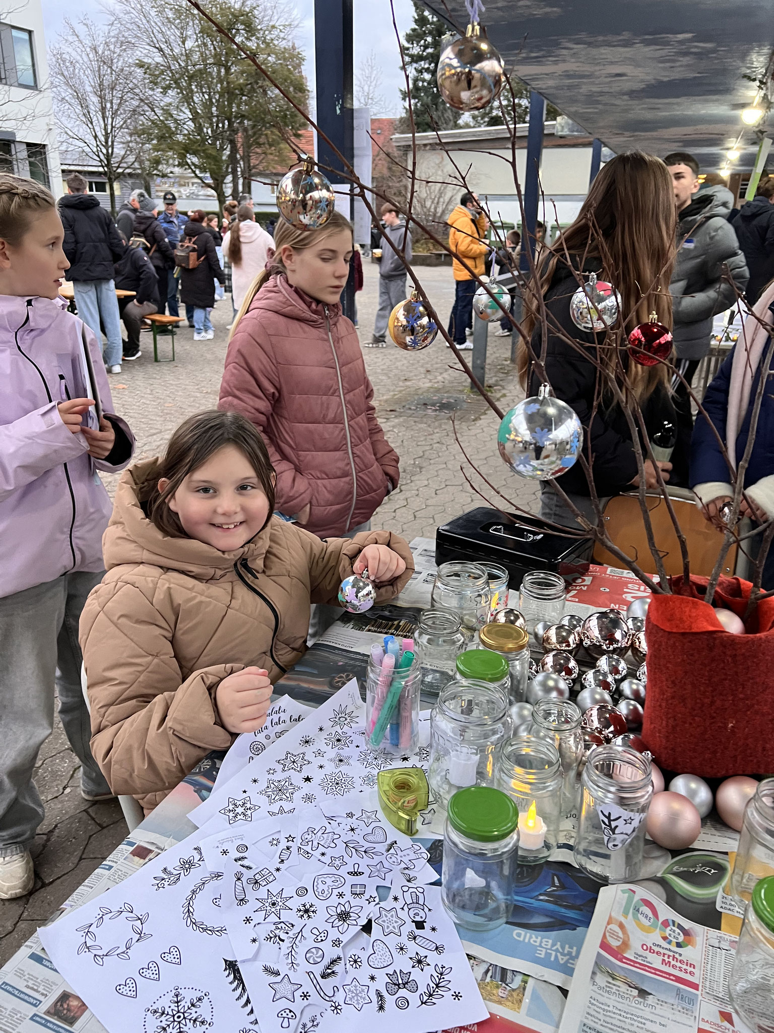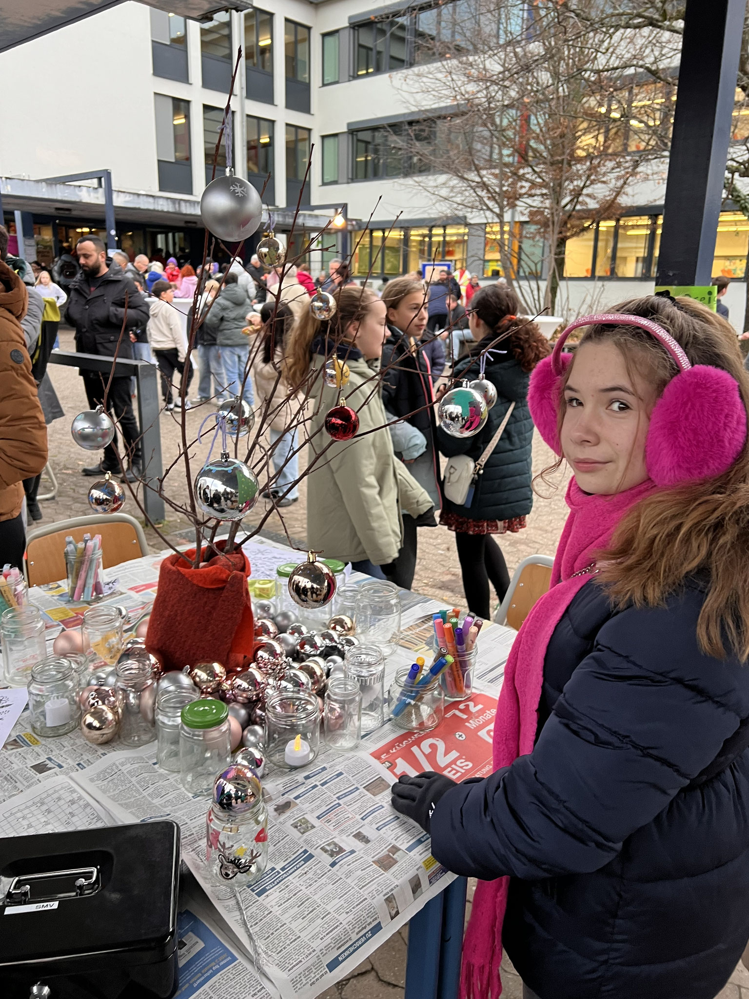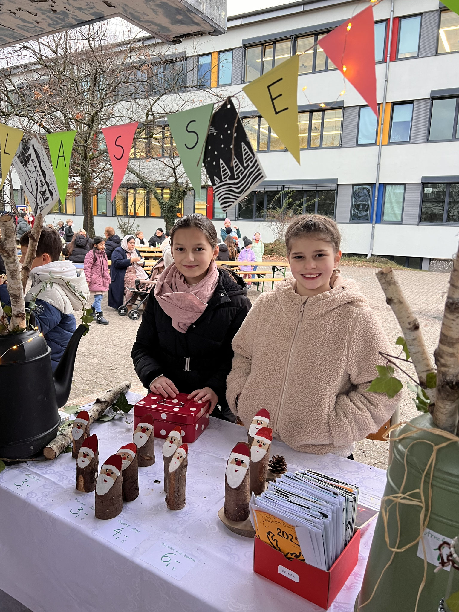 Auch in diesem Jahr hatten sich die Klassen wieder viele kreative Ideen einfallen lassen. Es gab ein Glücksrad, Dosenwerfen, ein Weihnachtsmannkatapult sowie ein menschliches Glücksspiel. Die Schülerinnen und Schüler hatten außerdem Plätzchen gebacken, viele schöne kleinere Winter- und Weihnachtsgeschenke vorbereitet und sorgten mit einer großen Auswahl an Leckereien wie Crêpes, Waffeln, Kuchen, Zuckerwatte, Flammkuchen und vielem mehr für das leibliche Wohl der Besucher.