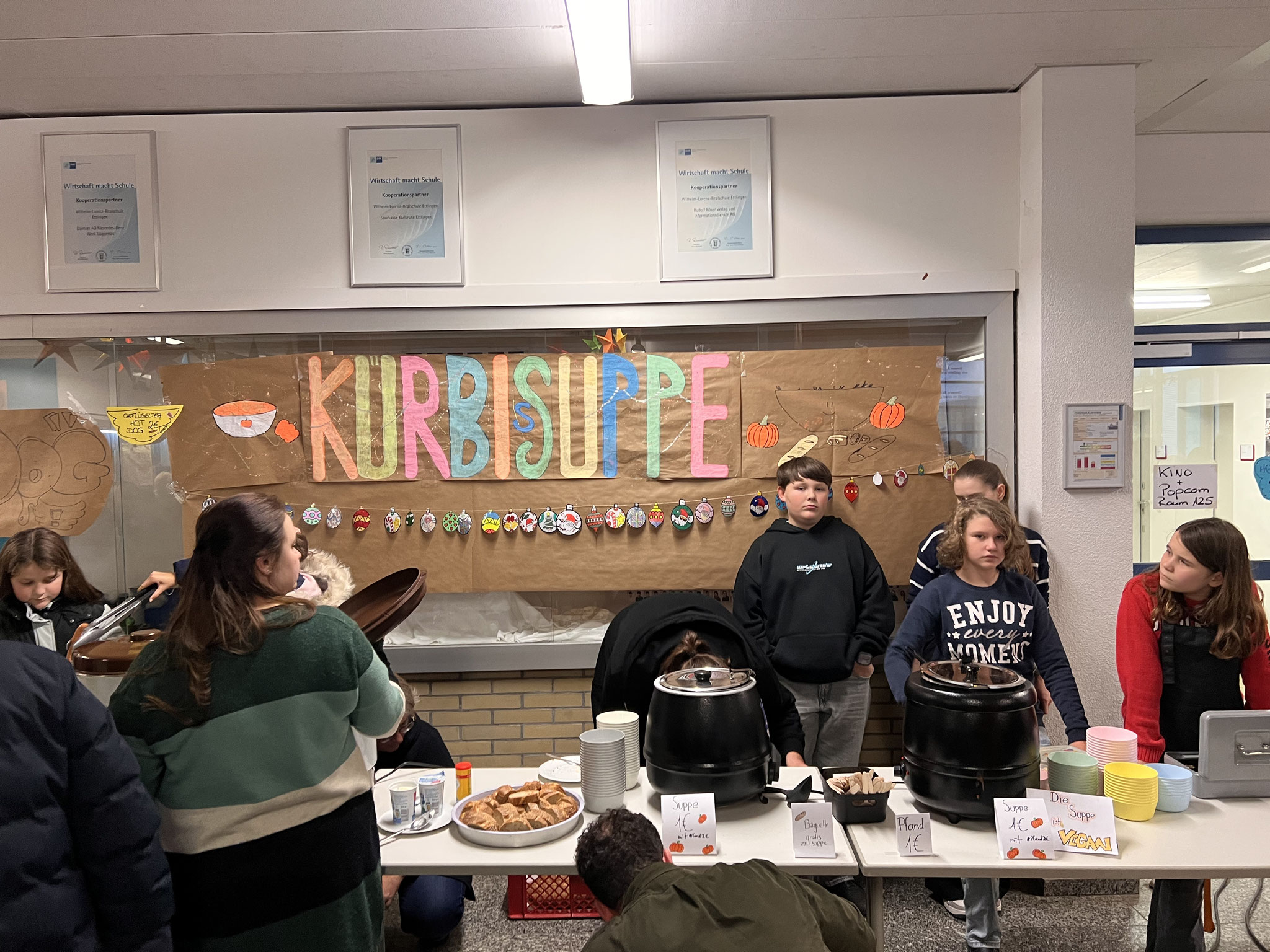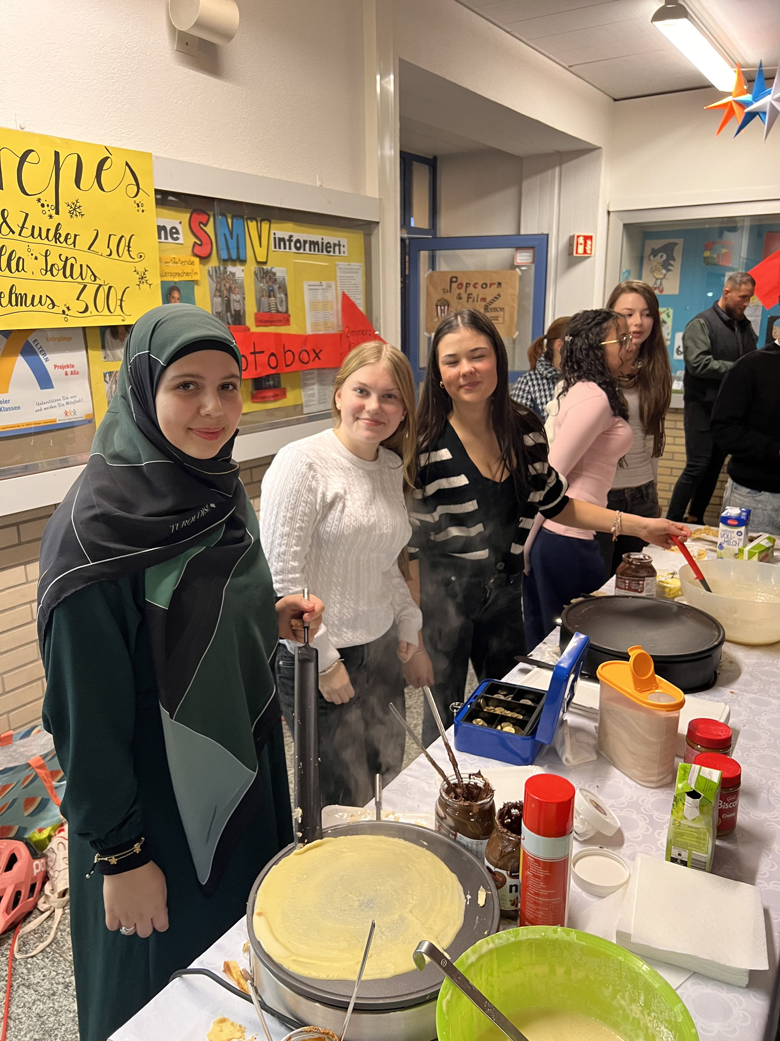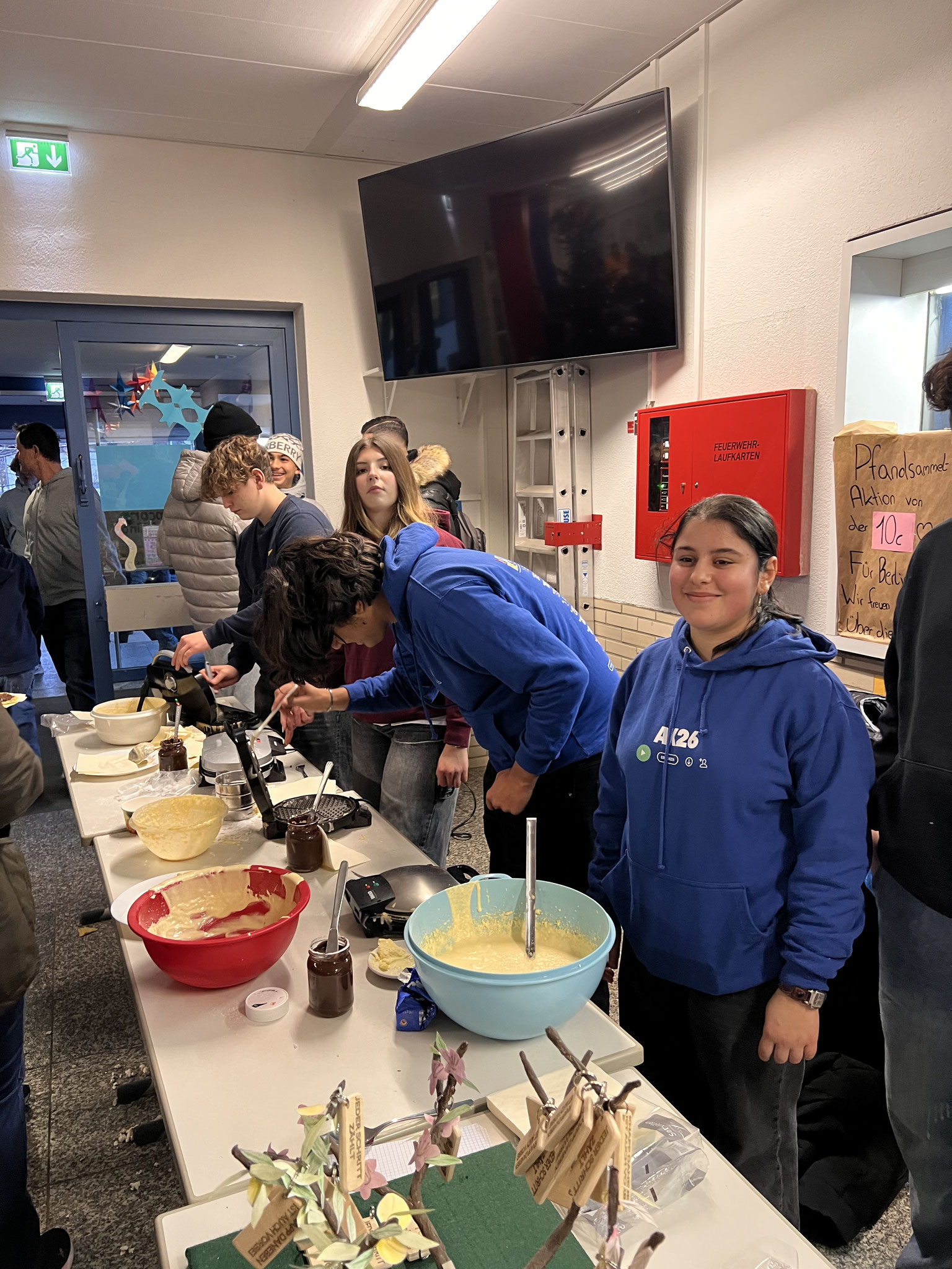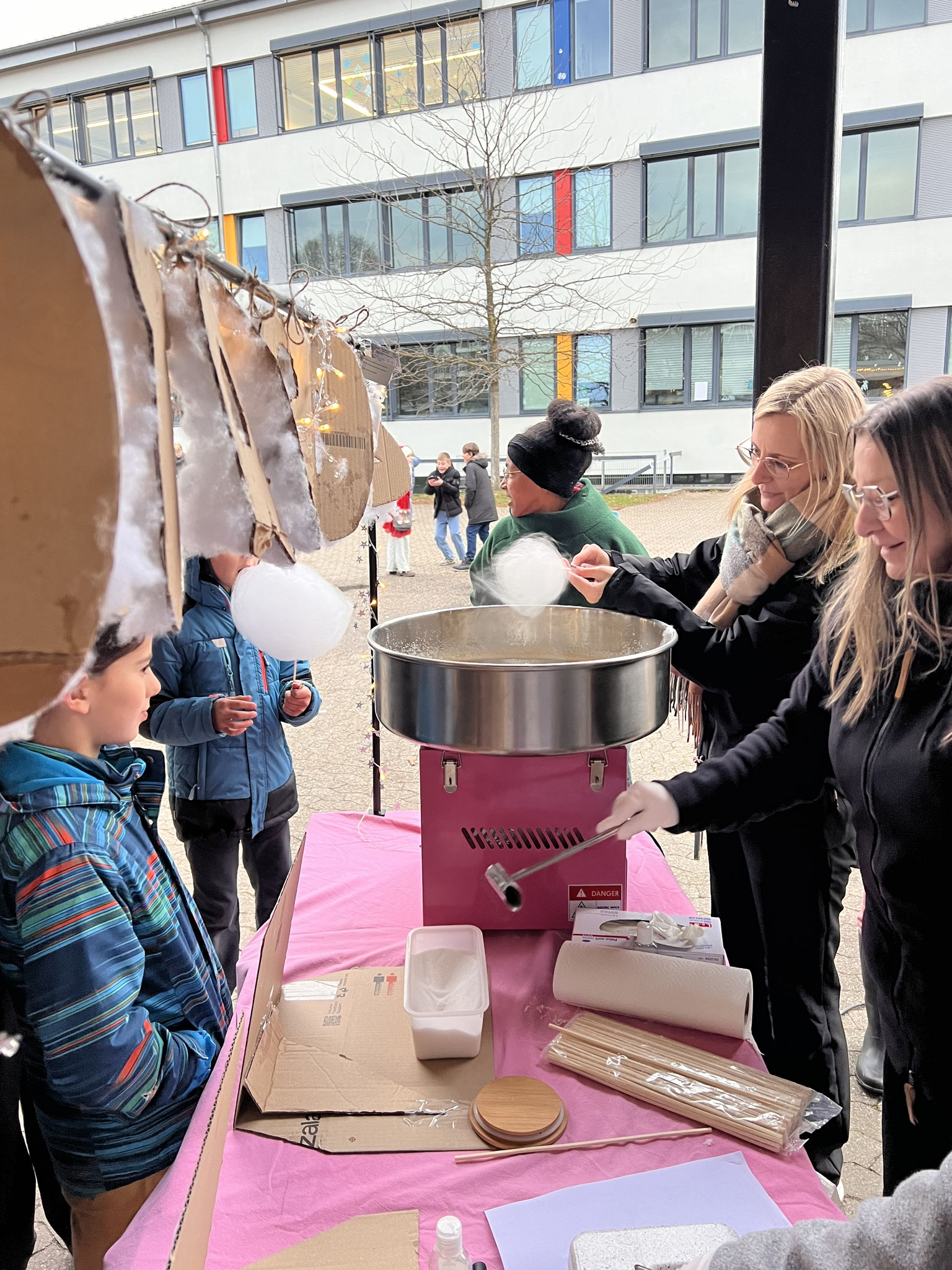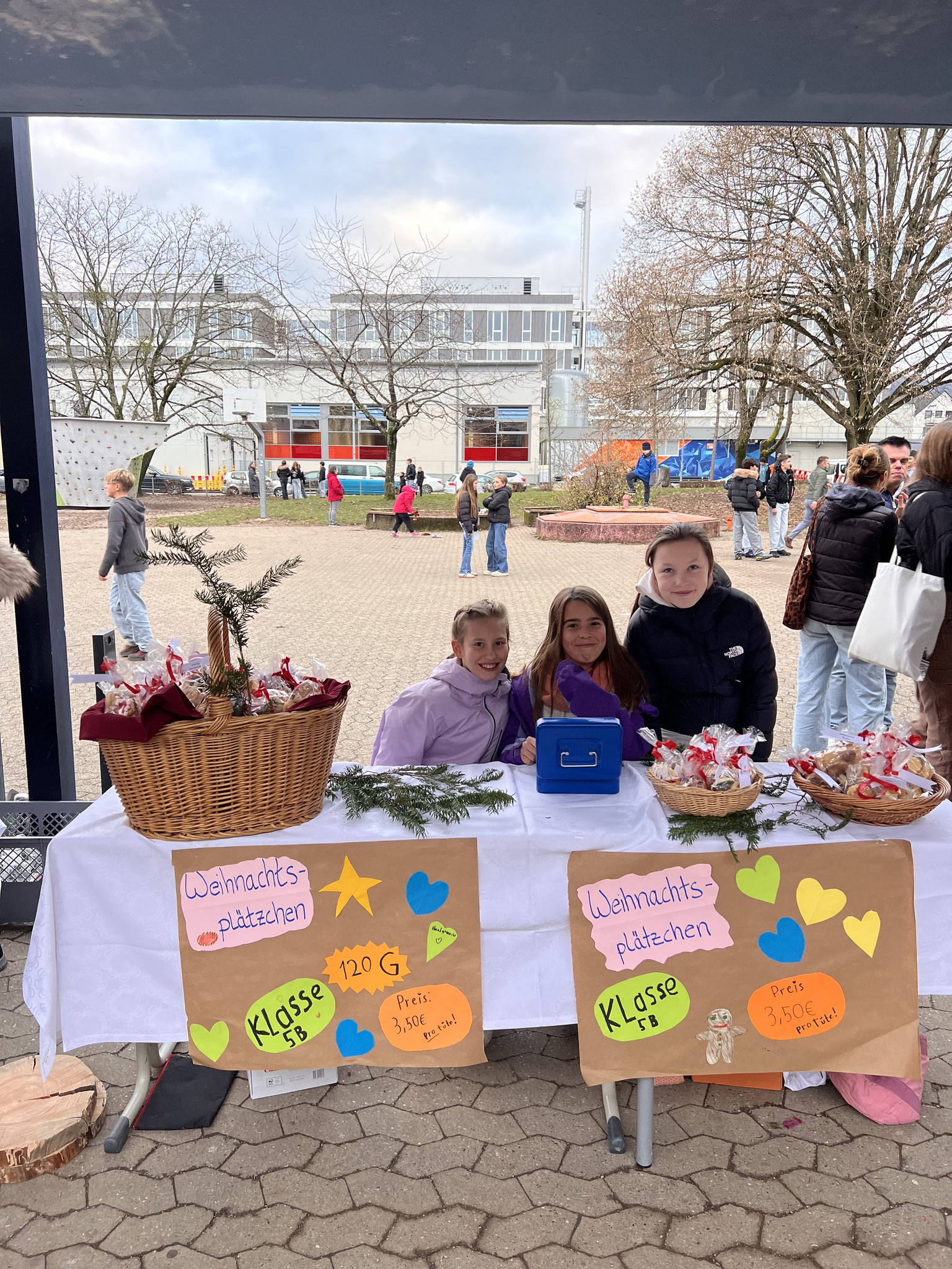 Auch in diesem Jahr hatten sich die Klassen wieder viele kreative Ideen einfallen lassen. Es gab ein Glücksrad, Dosenwerfen, ein Weihnachtsmannkatapult sowie ein menschliches Glücksspiel. Die Schülerinnen und Schüler hatten außerdem Plätzchen gebacken, viele schöne kleinere Winter- und Weihnachtsgeschenke vorbereitet und sorgten mit einer großen Auswahl an Leckereien wie Crêpes, Waffeln, Kuchen, Zuckerwatte, Flammkuchen und vielem mehr für das leibliche Wohl der Besucher.